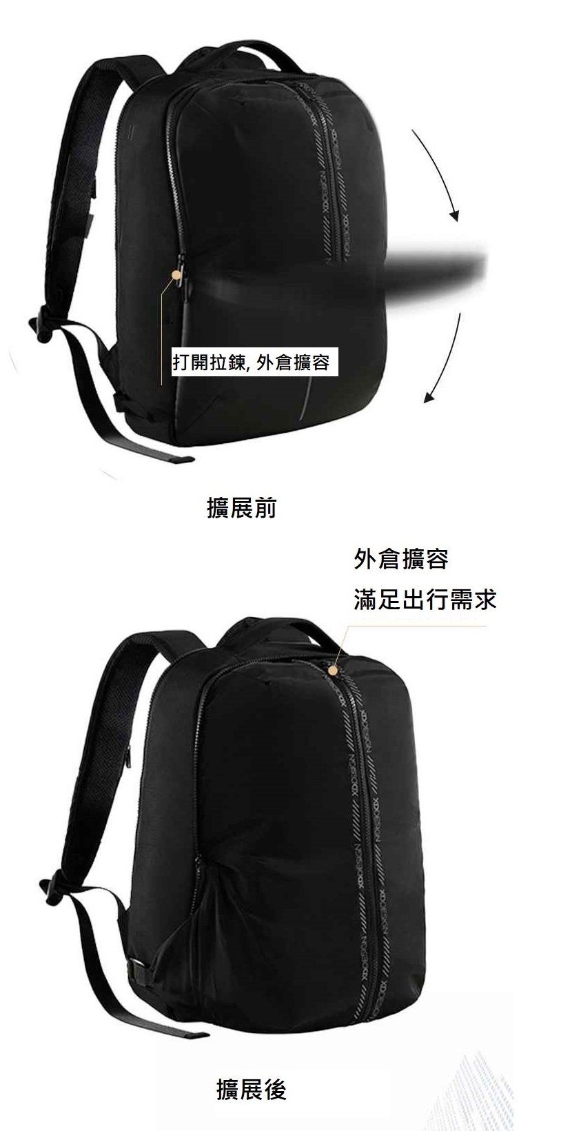 Business backpack expands and instantly transforms into an outdoor trendy bag