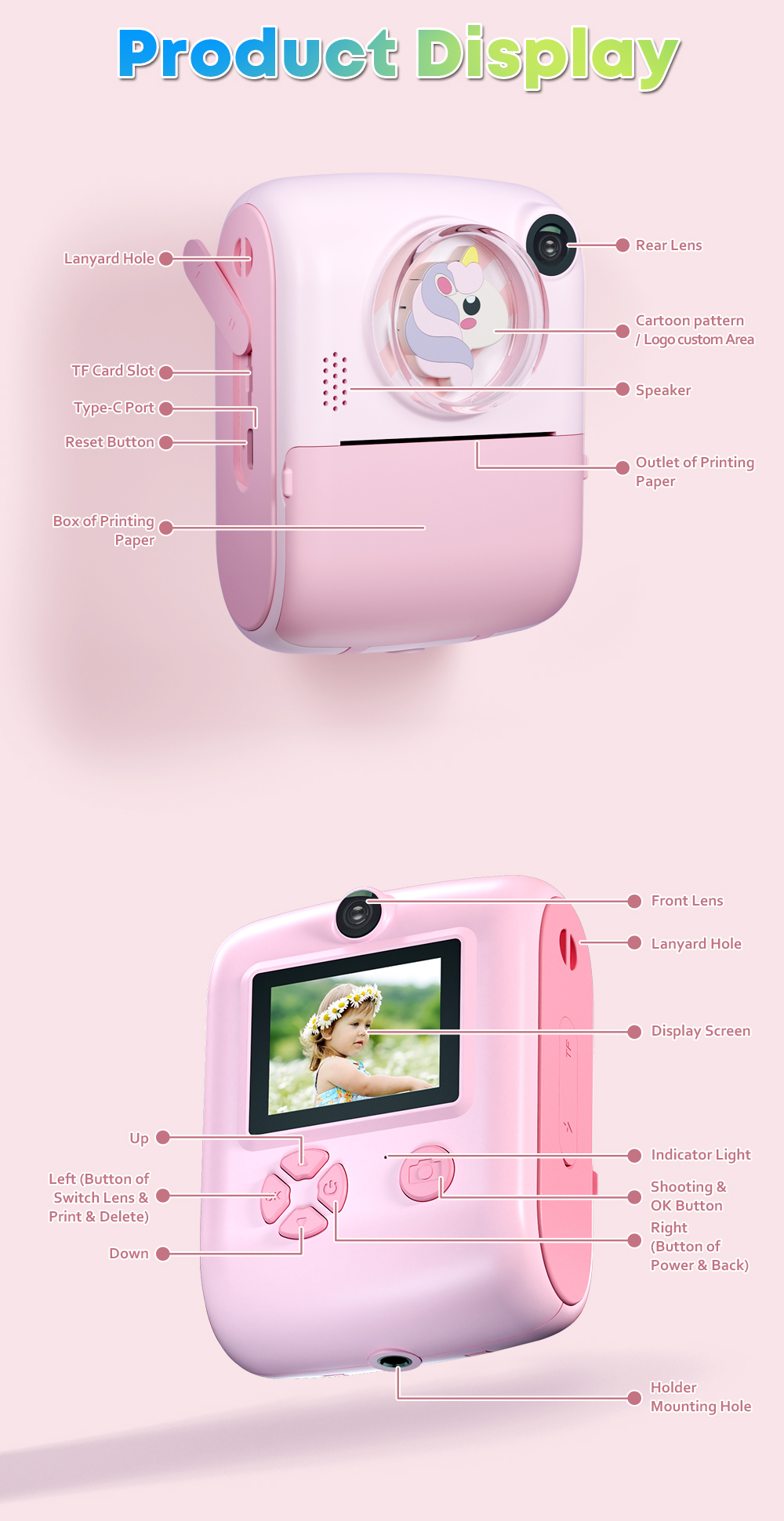 YMX CAM1 Zero Ink Print Photo Instant Print Camera for Kids Girl Boy Child Children Toddler Baby Christmas Birthday Gift
