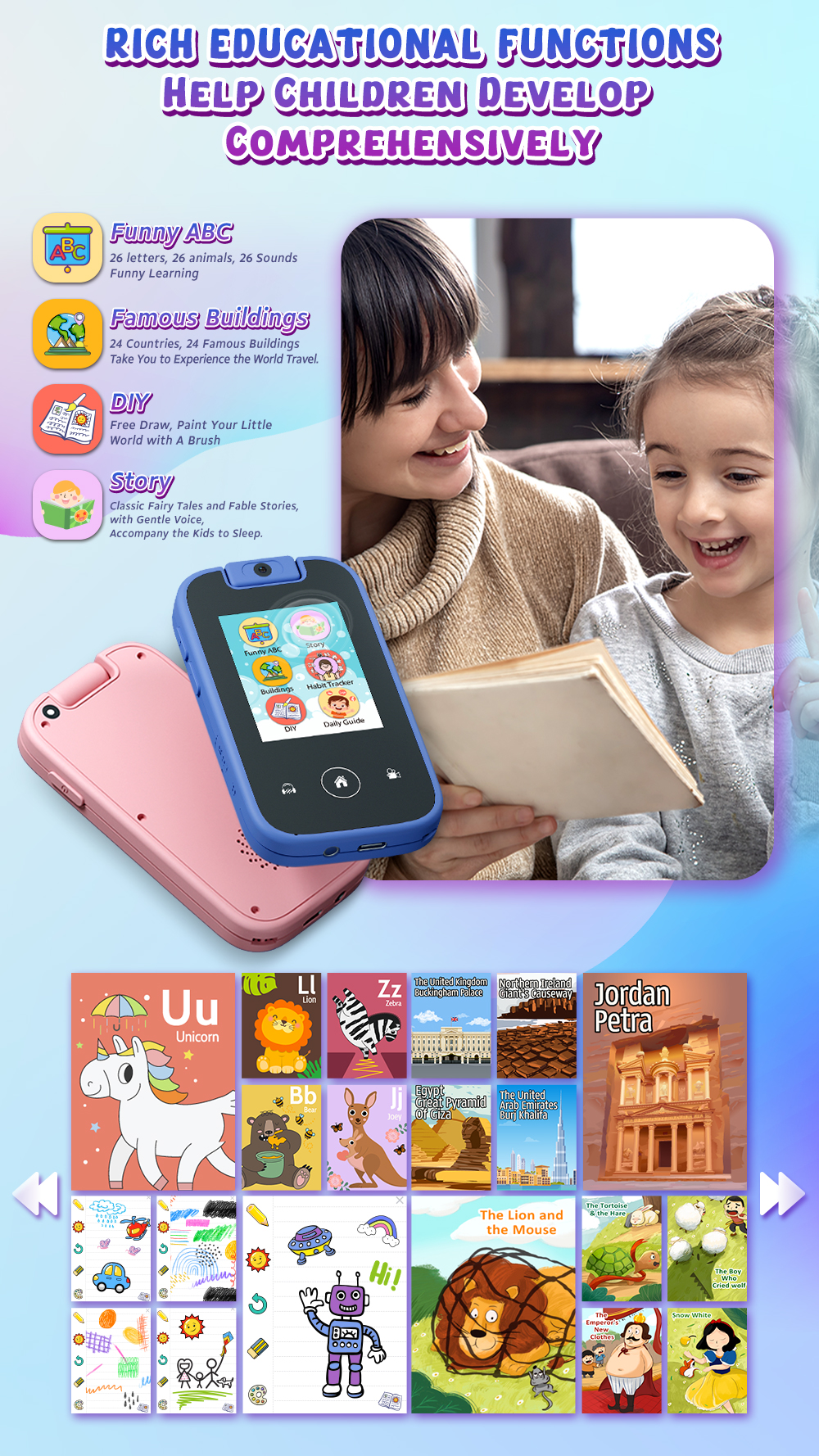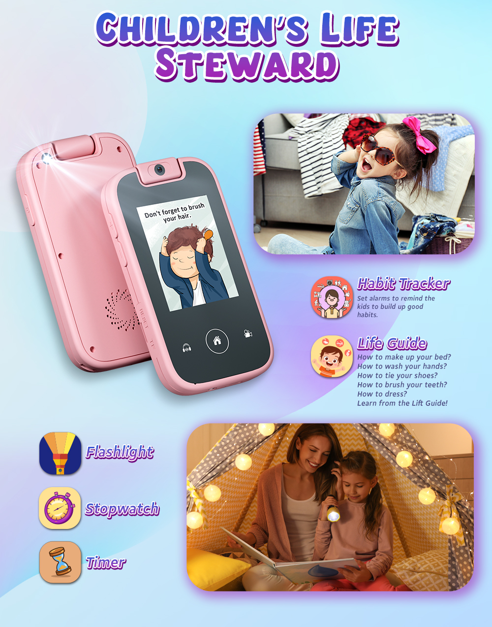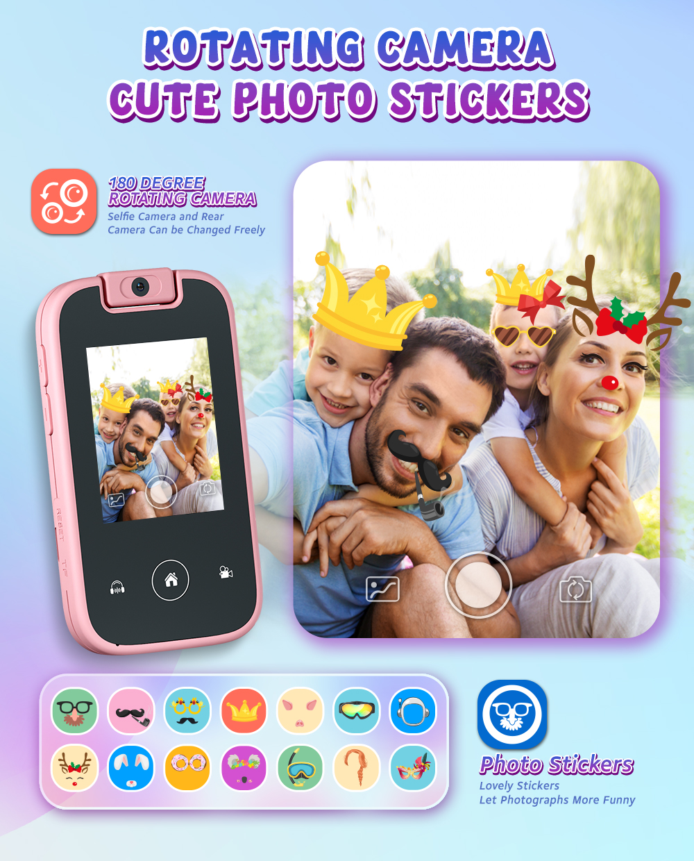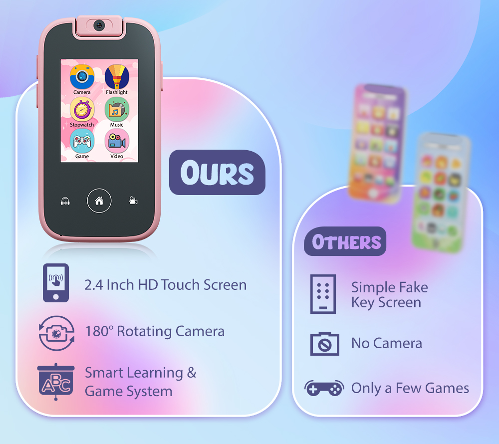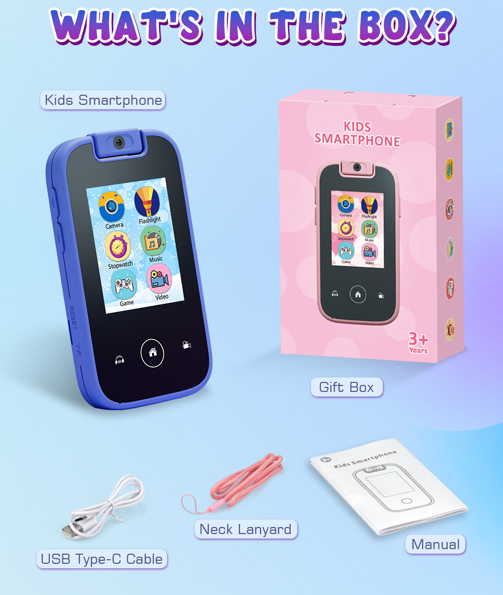 YMX PH03 Toy Smart Cell Mobiles Phone Smartphone with Touchscreen Touch Screen Flip 180 Rotating Camera for Kids Girls Boy Child