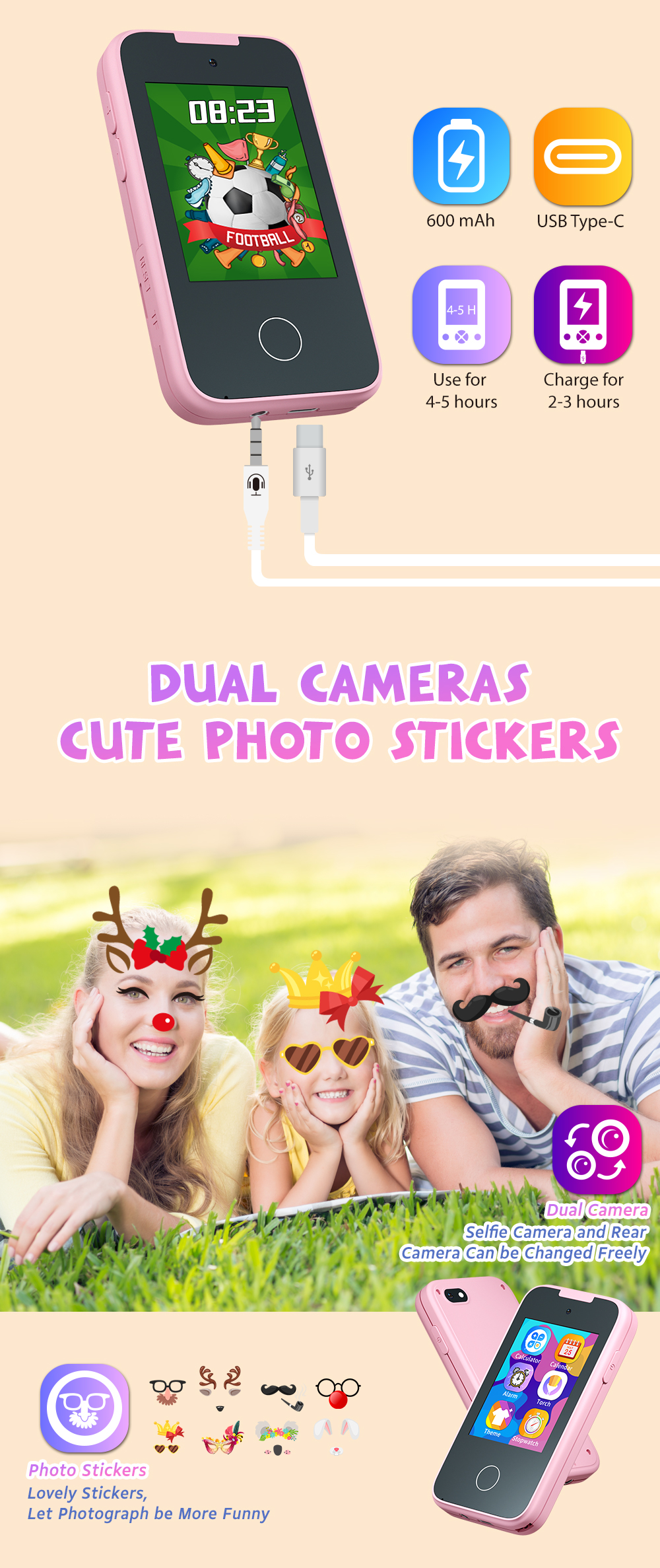 YMX PH05 Mini Cute Electrical Electronic Electric Kids Toy Mobile Smart Cell Phone Smartphone with Camera for Kid Child Children