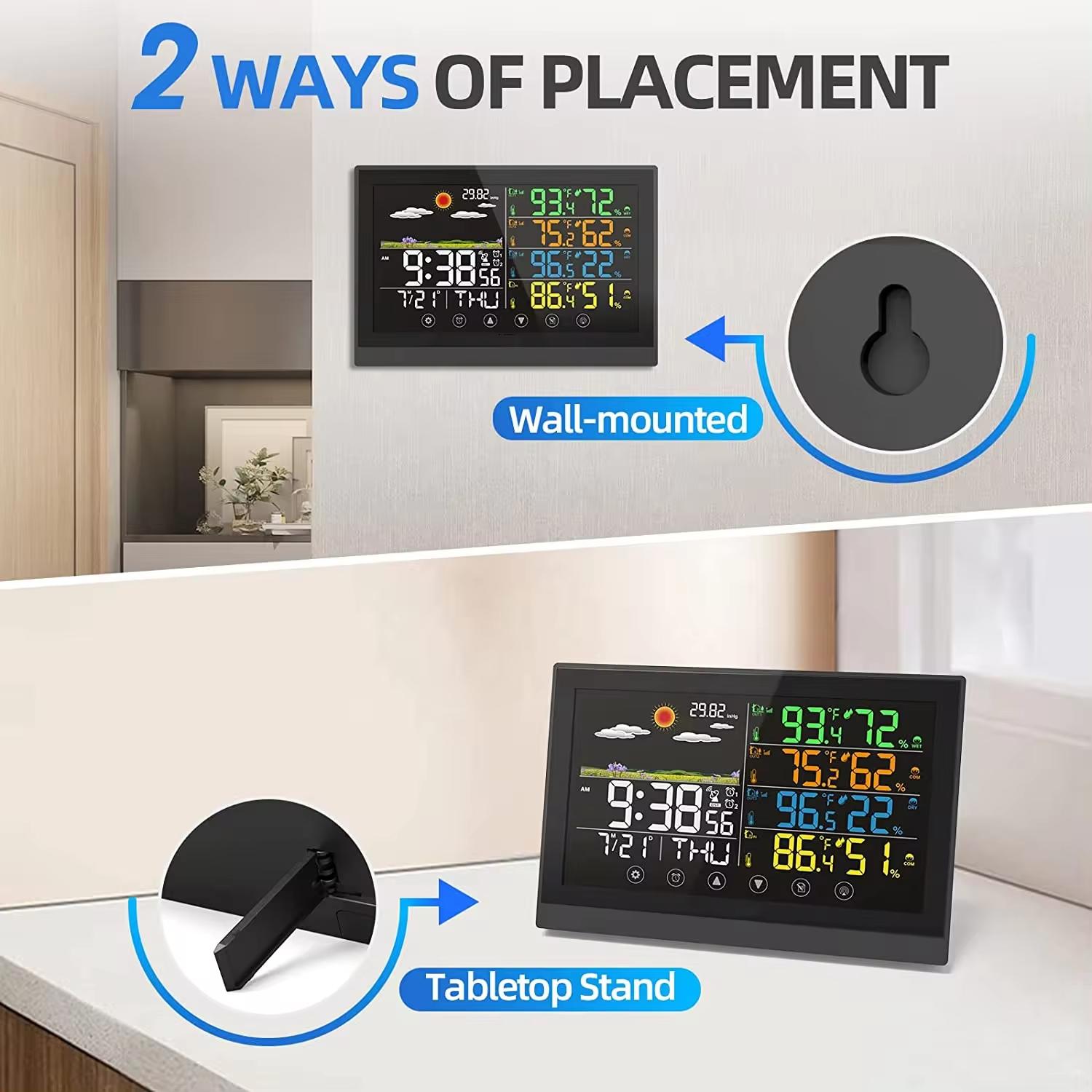 YT60125 Multi channel display, temperature and humidity calendar, home weather station, weather clock