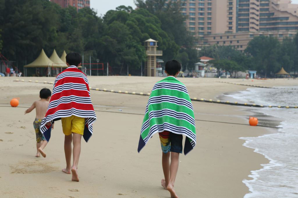 100% cotton terry yarn dyed stripe with solid wide border