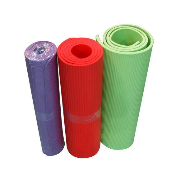 These are colourful rubber yoga mats. The mats are of different thickness and thus different levels of softness. The yoya mat can be used to lay on the floor while doing yoga or gymnastics.