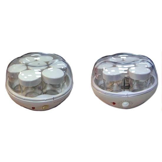 This yogurt is featured with 7 glass cups with lids. It is also designed with a light indicating the progress of yogurt making. The model YM701 has a on/off switch while YM701T is featured with a 3-15 hour electronic timer control.