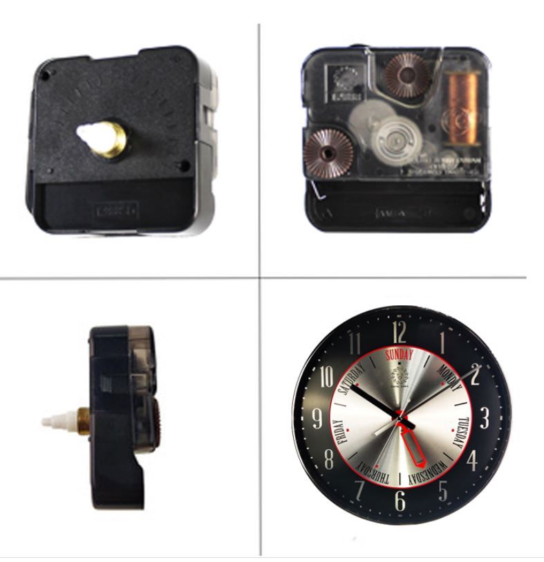 This clock part created and patented by Young Town is an innovative design. Like other standard clock movements, week clock movements help quartz clocks display standard time with second, minute and hour hands. However, what make this module so special is that 7 day clock movements can even show the day of the week on a clock with the indication hand.