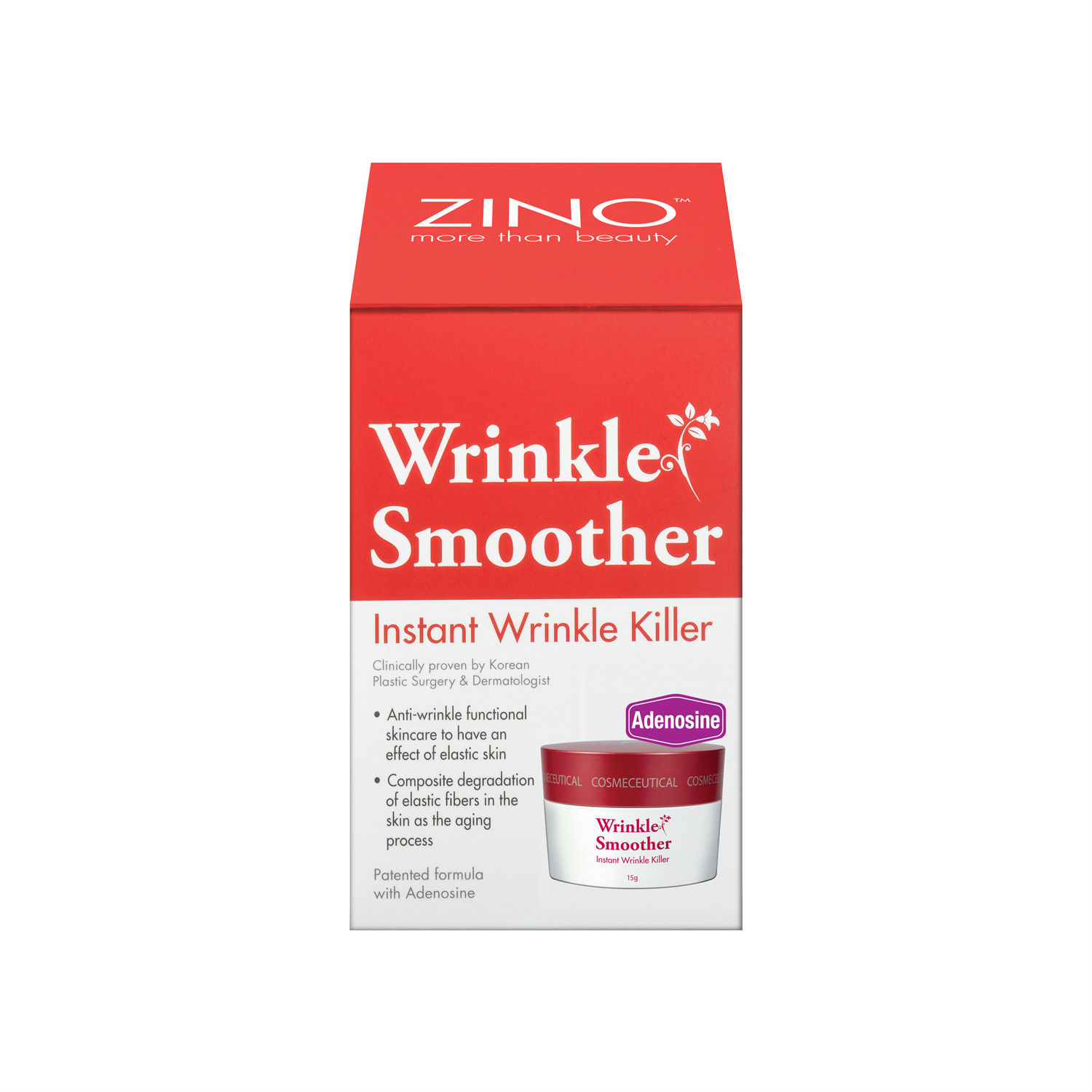 ZINO Wrinkle Smoother fills up the fine lines and wrinkles immediately. Patented formula contains Adenosine to restore clarity and elasticity and soften fine lines and wrinkles. Daily use may help to eliminate facial lines anf expression lines.