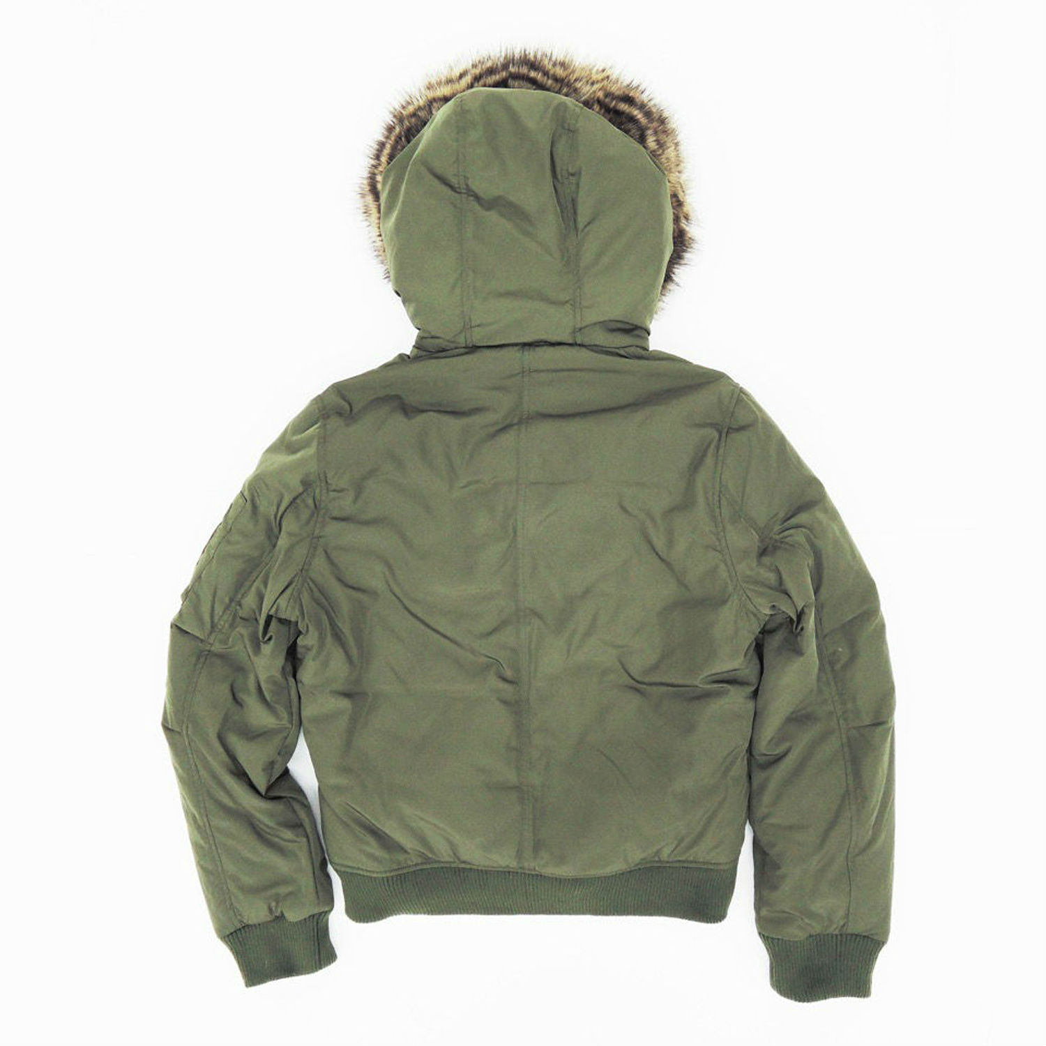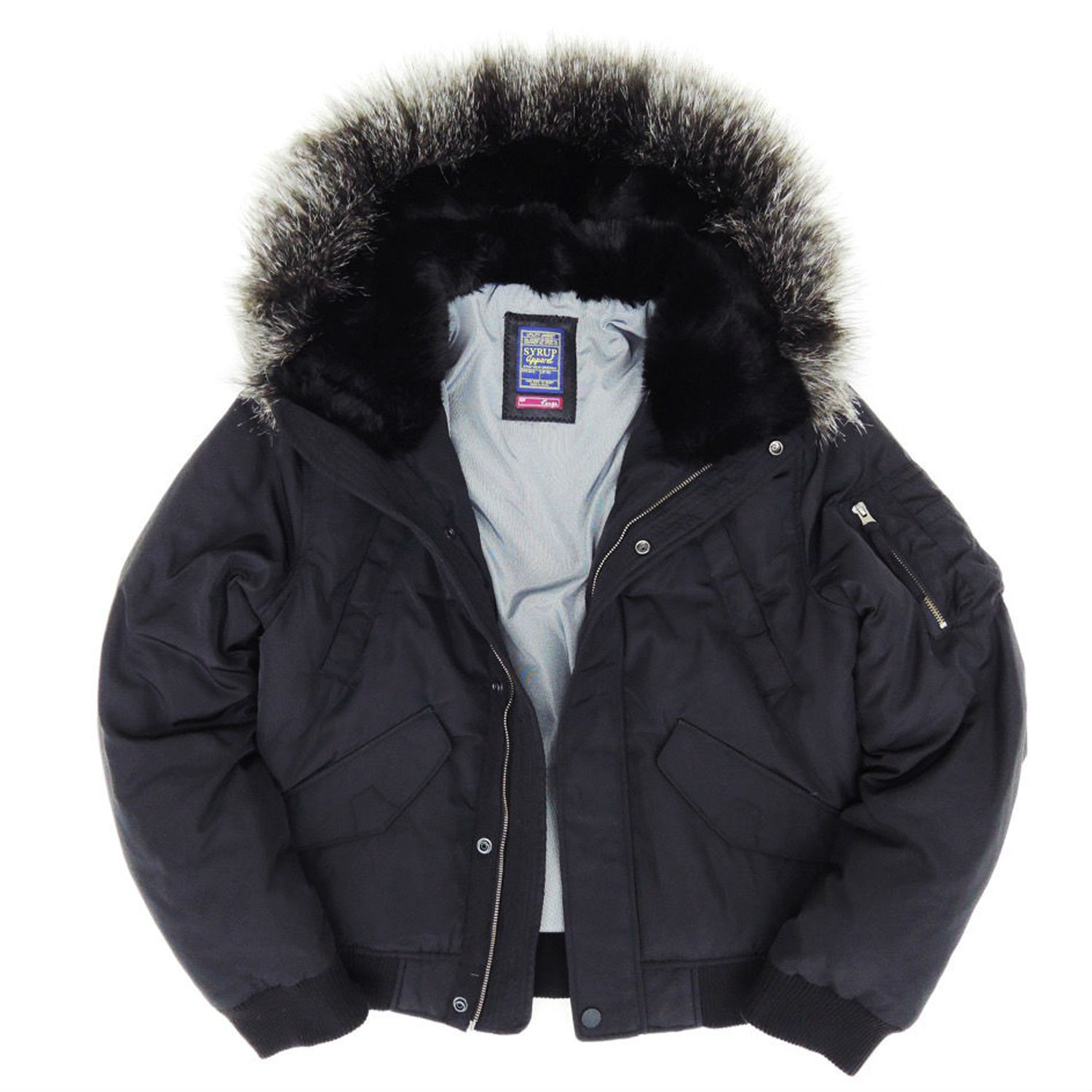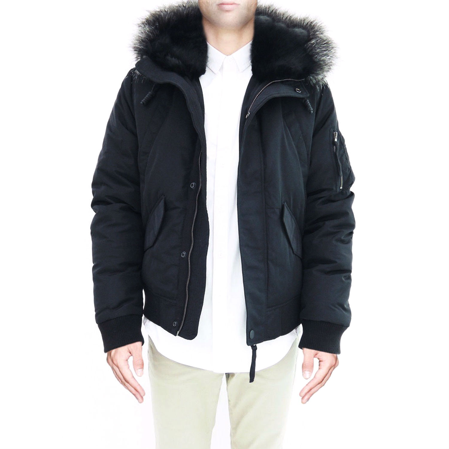 Every modern wardrobe needs a bomber jacket, and featured here is a minimalist option. This 90/10 down-filled jacket features a fur-lined hood which gives a snug touch to the item. Five pockets are there for storing miscellaneous essentials, while ribbed cuffs and hem offer a comfortable finish. Zip up and snap button closures in the front allow secure and convenient fastening.