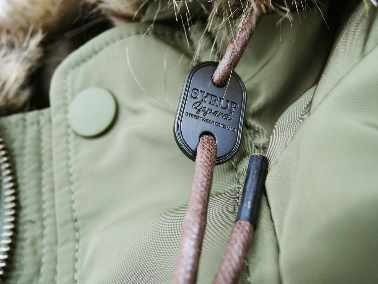 - Material: 90/10 down-filled, poly shell fabric, nylon (lining), fur (hood), YKK metal (zip), magnet (pocket closure).