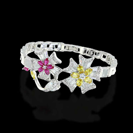 Displayed is a set of jewelry accessories made of high quality zicon. This graceful jewelry set includes a pair of earrings, a bracelet, a ring and a necklace. Well-polished to give the highest degree of luster and brightness, this exquisitely crafted jewelry makes a great addition to your jewelry collection. Wear the whole set or individual items to suit different occasions and fashion.