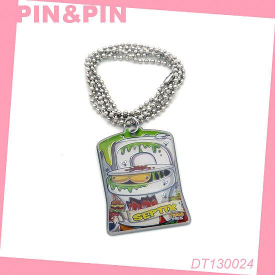 Available is an aluminum dog tag with a debossed logo. This piece is completed with a silver finish. The tag is also compliant with various standards.