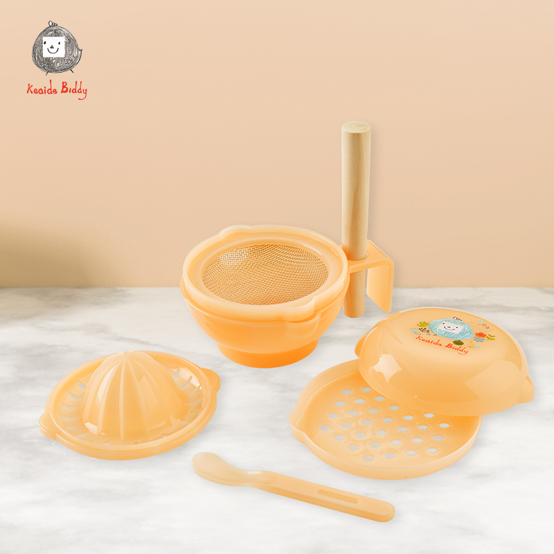 It is made of PP, stainless steel and wood. easy for mum to make the baby food