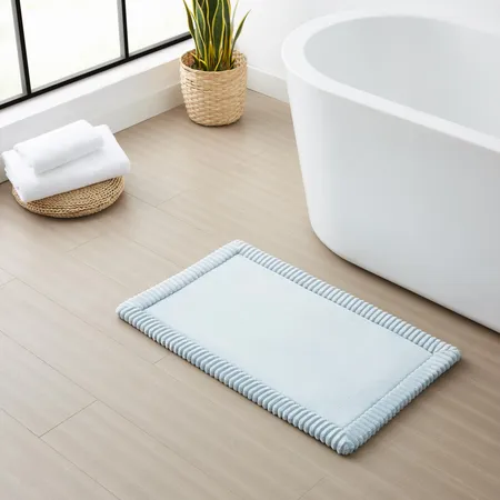 Memory foam BATH MAT, 50X80CM, WIDE BORDER, LT BLUE, 100%POLYESTER FLANNEL