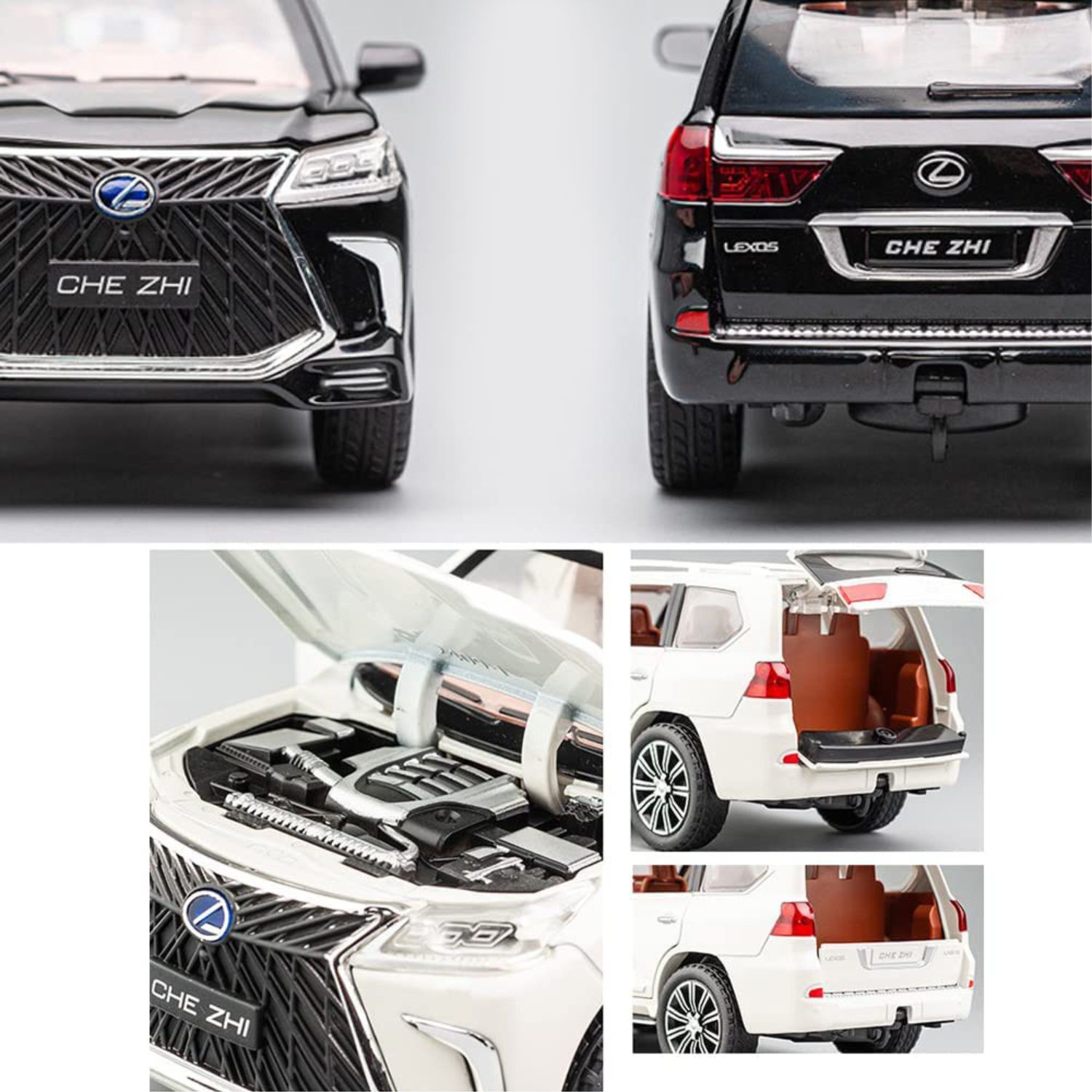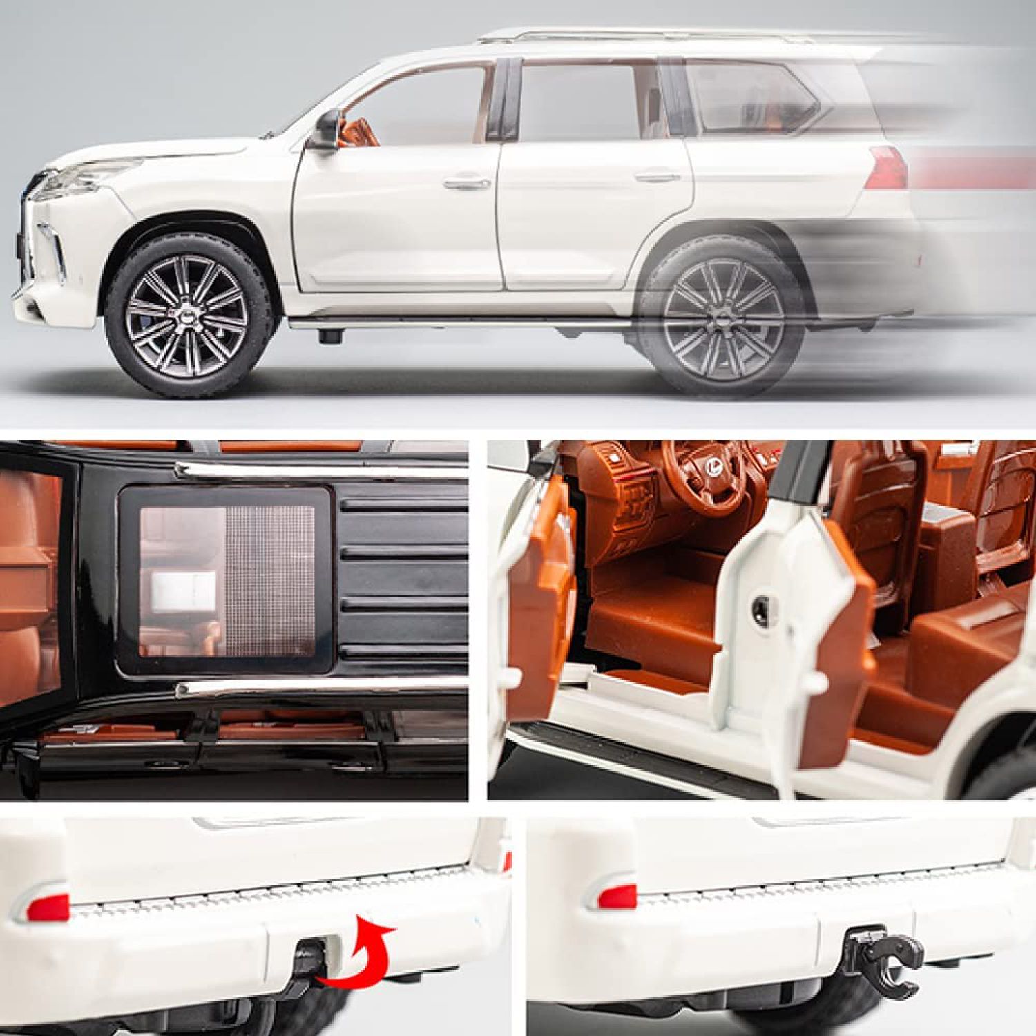 Car models Function : Back pull function, Four doors, hood, trunk can be opened, tailgate can be moved down; Press the two wheels of the car in front to trigger the sound of the engine and headlights; A tow hook at the bottom of the rear to be removed or hidden; Visible skylights, car interior details are real.