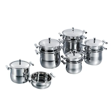 stainless steel couscous pot, 0.6mm to 0.8mm body thickness, 0.5mm aluminum+1.5mm iron+0.5mm aluminum capsule bottomSize: 4L/6L/8L/12L/14L/16L
