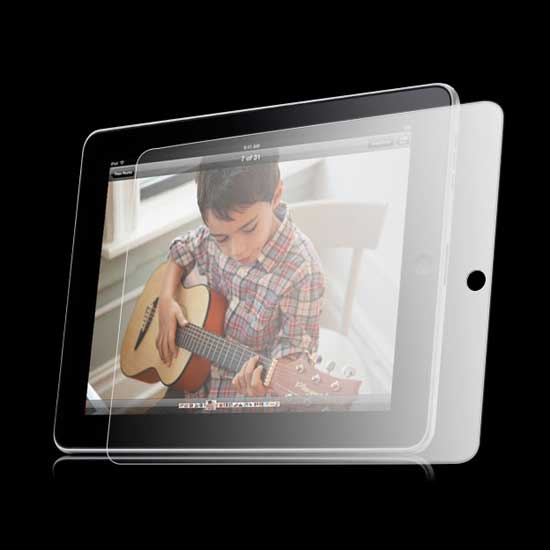 As shown is a screen protecting film especially designed for iPad. The film features a fingerprint-resistant function to keep the touch-screen always clean. The highly transparent film also protects the screen from scratches.