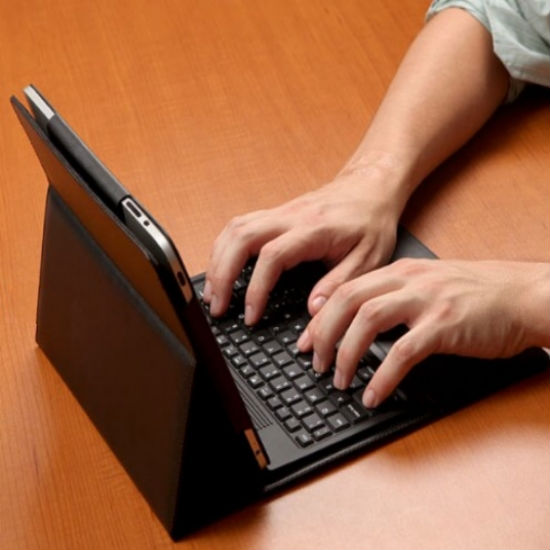 When iPad saturates your everyday life, our Bluetooth iPad keyboard case is a real partner for your iPad that let you with more comfortable typing - this innovative foldable case is ideal for people who regularly use their iPad for e-mailing, making notes and writing documents. When it is in used, the iPad rests on a built in stand in a horizontal orientation which makes the whole package look and work almost like a netbook. The case is made of soft synthetic leather and closes with a magnetic clasp. It feels good when you're carrying it around. The keyboard comes with all the function keys you would expect with an iPad working similar as a laptop.