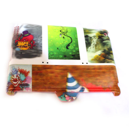 This iPad case stands out with engaging 3D imagery as decoration. The imagery includes clowns, a monster, green bubbles and a scene of nature. This case offers your tablet reliable protection while adding visual interest to it.