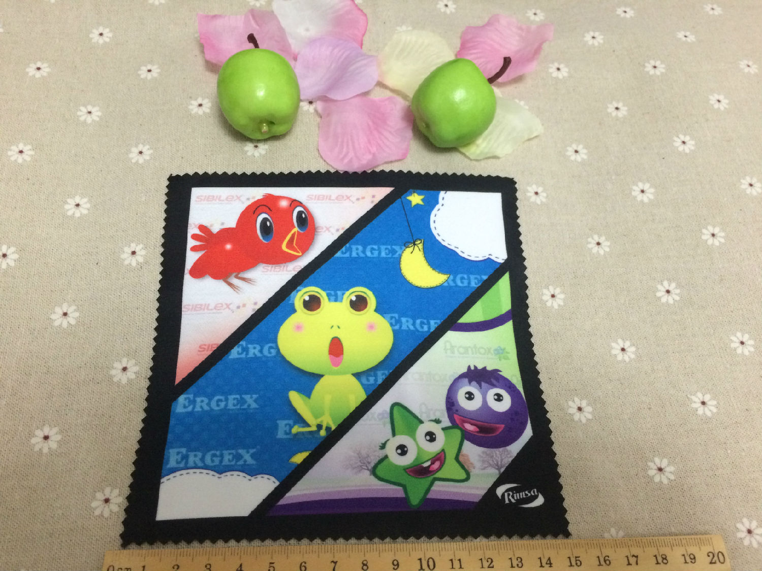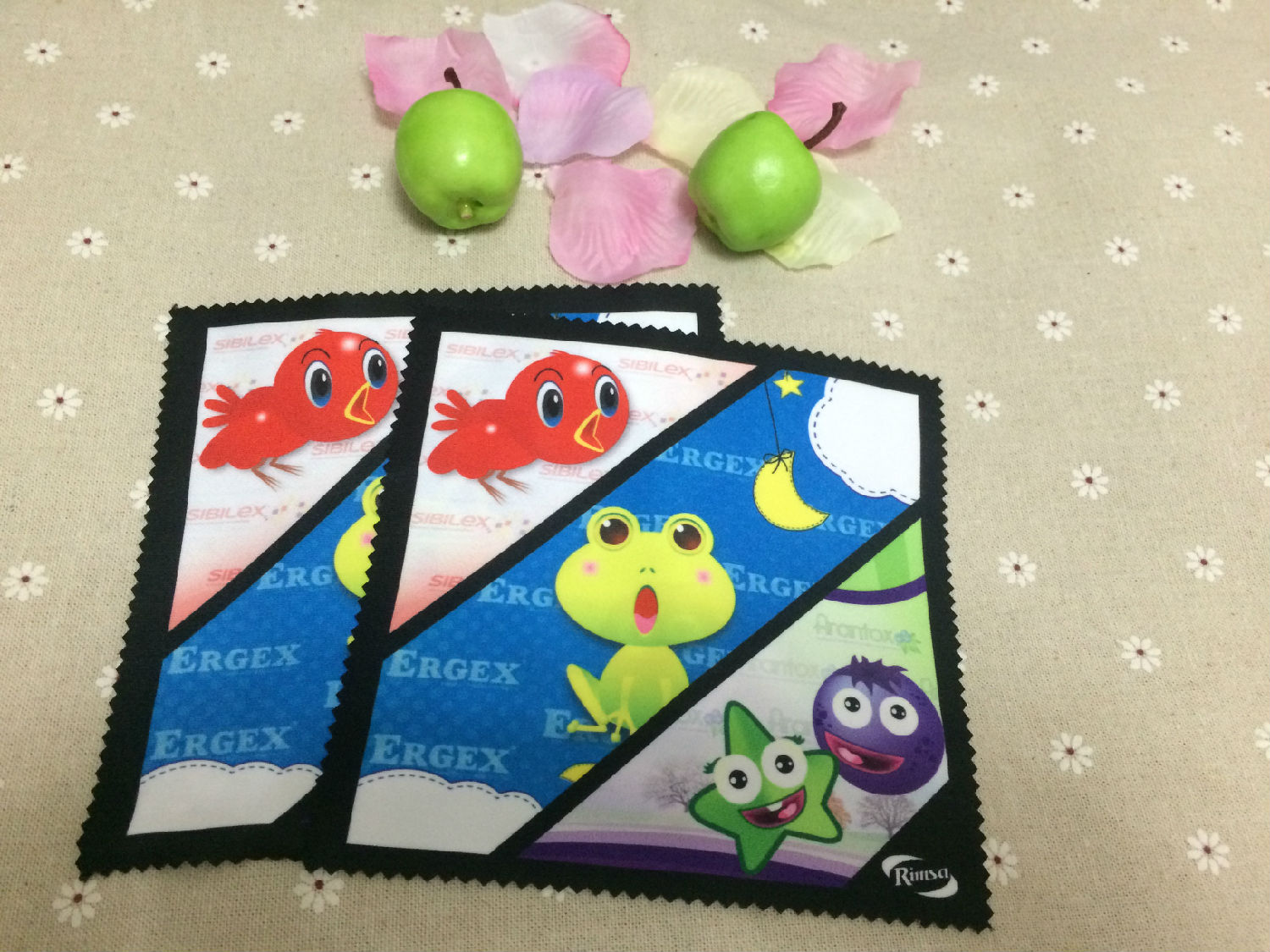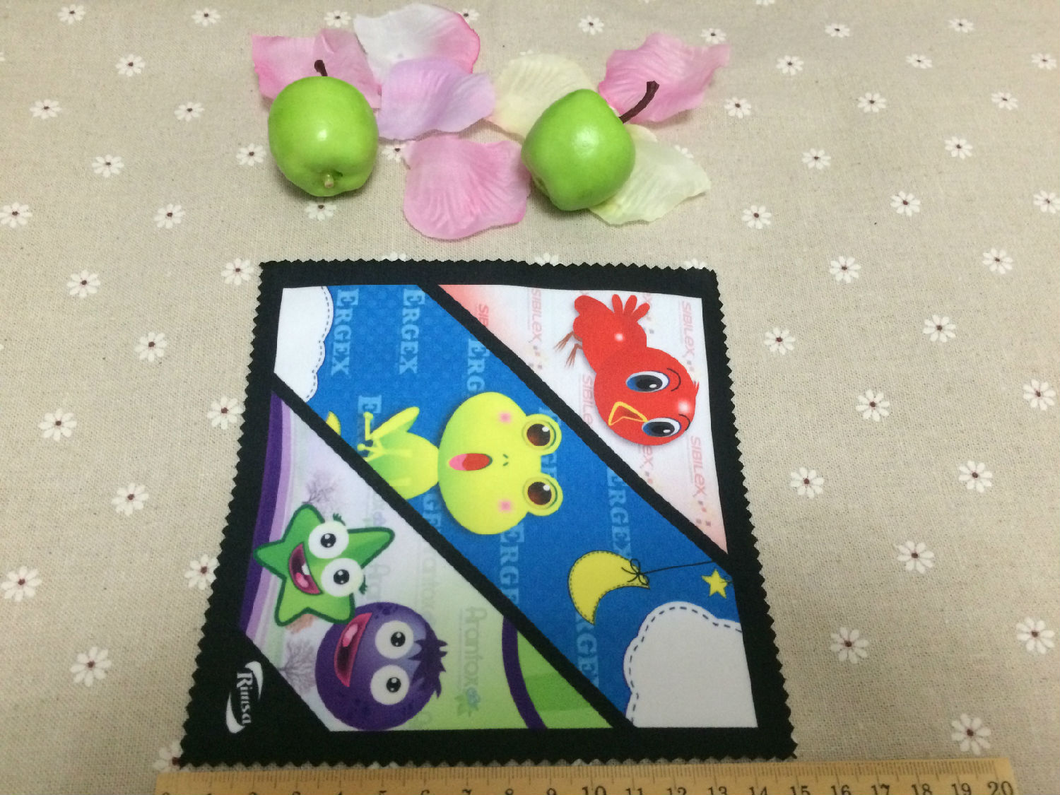 6.Function and character: Antibacterial, Washable ,The microfiber cleaning cloth is perfect for cleaning fingerprints, fashion jewelry, mobile phone, watch, dust and dirt off LCD screens ad so on. Best advertising way to promote a company, an event, a new product or even a new idea due to the light weight, easy packaging, full printing area with unique, colorful and striking photo printing.