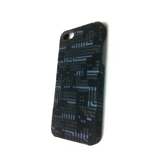 The displayed black iPhone 5 case features allover geometric patterns in gray and blue. It is professionally engineered to ensure easy access to all ports and functions. This highly reliable iPhone 5 case is sure to keep scratches away from your phone.