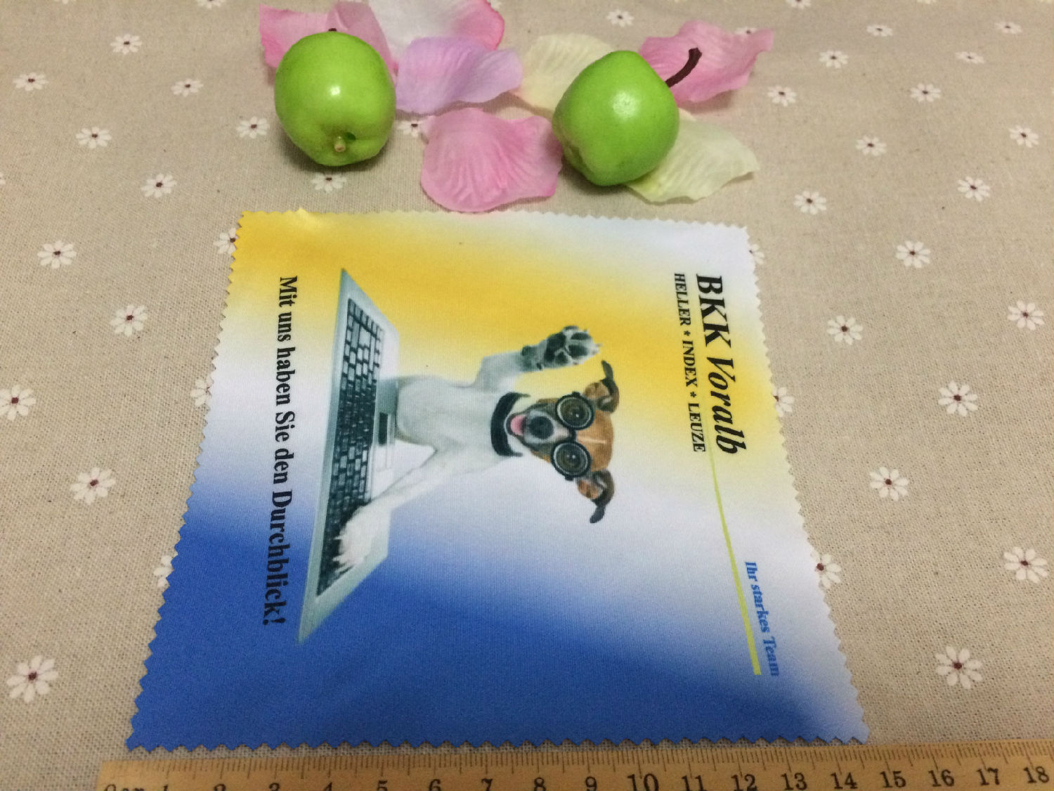 6.Function and character: Antibacterial, Washable ,The microfiber cleaning cloth is perfect for cleaning fingerprints, fashion jewelry, mobile phone, watch, dust and dirt off LCD screens ad so on. Best advertising way to promote a company, an event, a new product or even a new idea due to the light weight, easy packaging, full printing area with unique, colorful and striking photo printing.