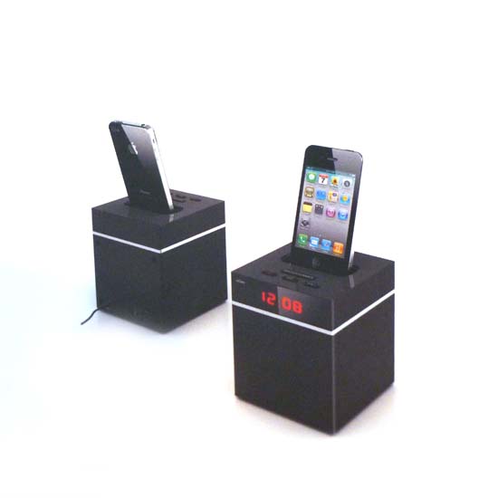 Outlined is a docking station designed for iPhone and iPod use. Designed with a universal dock, this docking station charges your iPhone and iPod when it plays. You can experience powerful bass, swift mediant and high-pitch sound effects with this potent docking station.