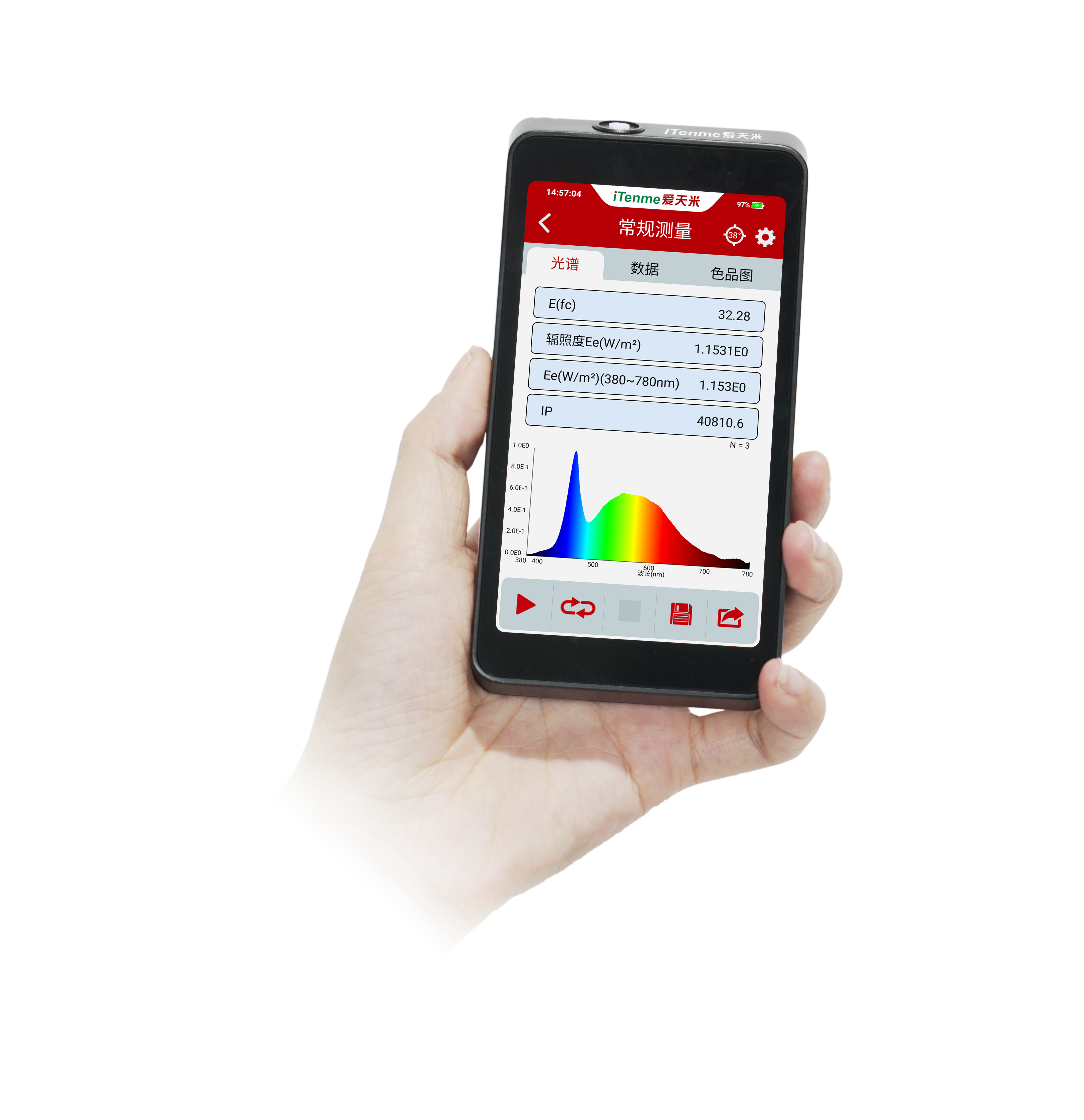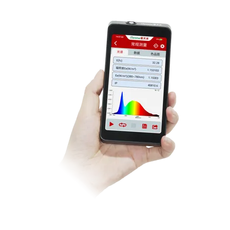 iTenme SPIC-301 Spectral Irradiance Colorimeter is unique for its technology of RWM(Reading while Measuring) which integrates optical sensing, sensing position detecting and smart display in a handhold device. It can display the sensing angle of the optical window while measuring spectral irradiance in real time.