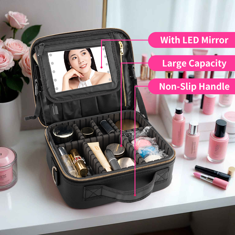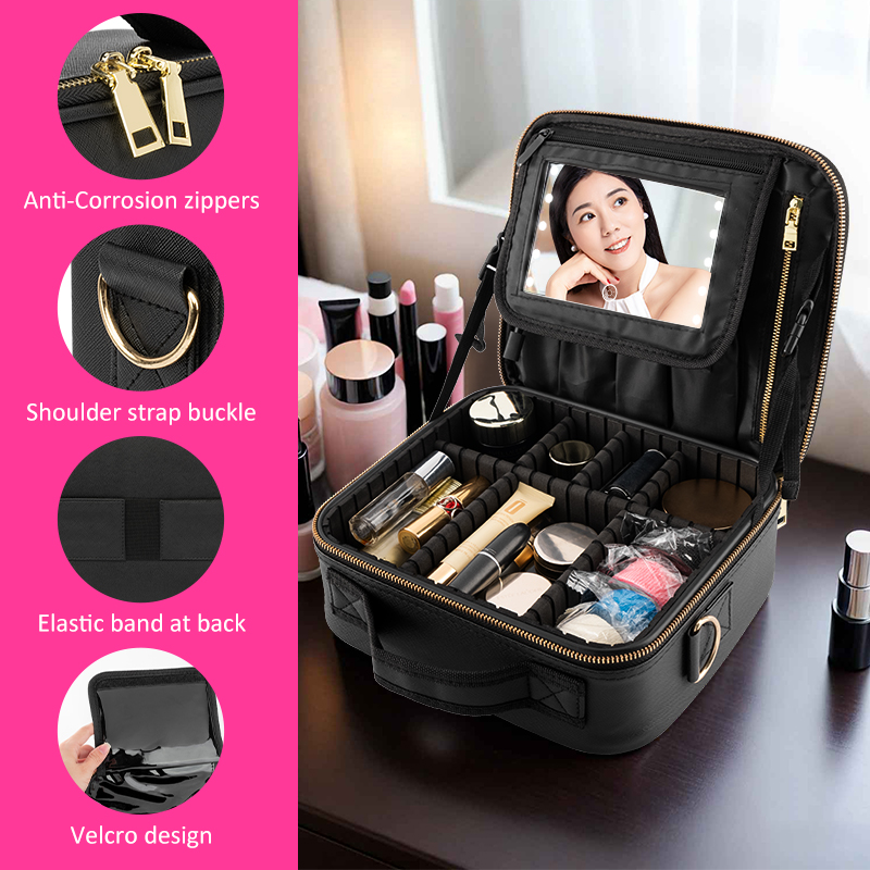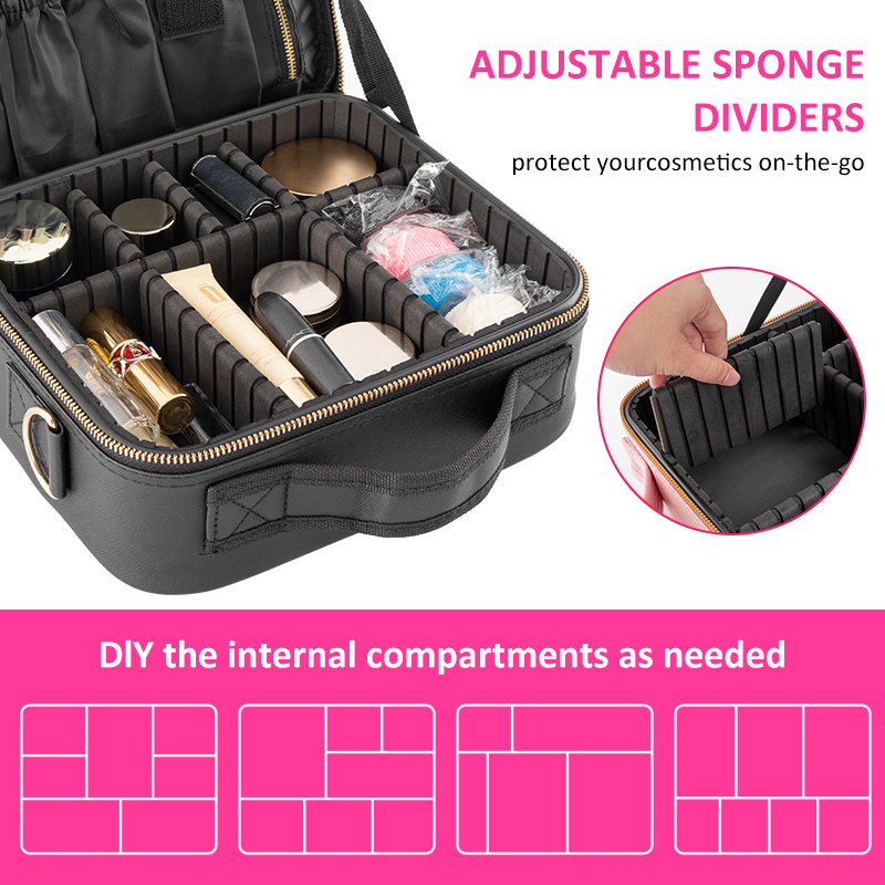 Water- and Stain-Resistant: The PU leather surface is waterproof and easy to wipe clean, effectively protecting the cosmetics stored inside.