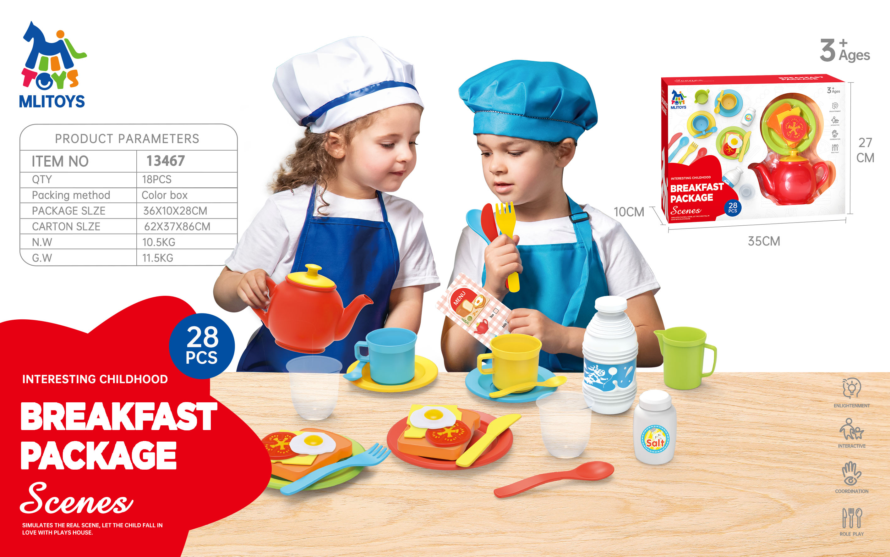 13467, cooking set ( cup+cutlery+ tableware) for a funny playing house .