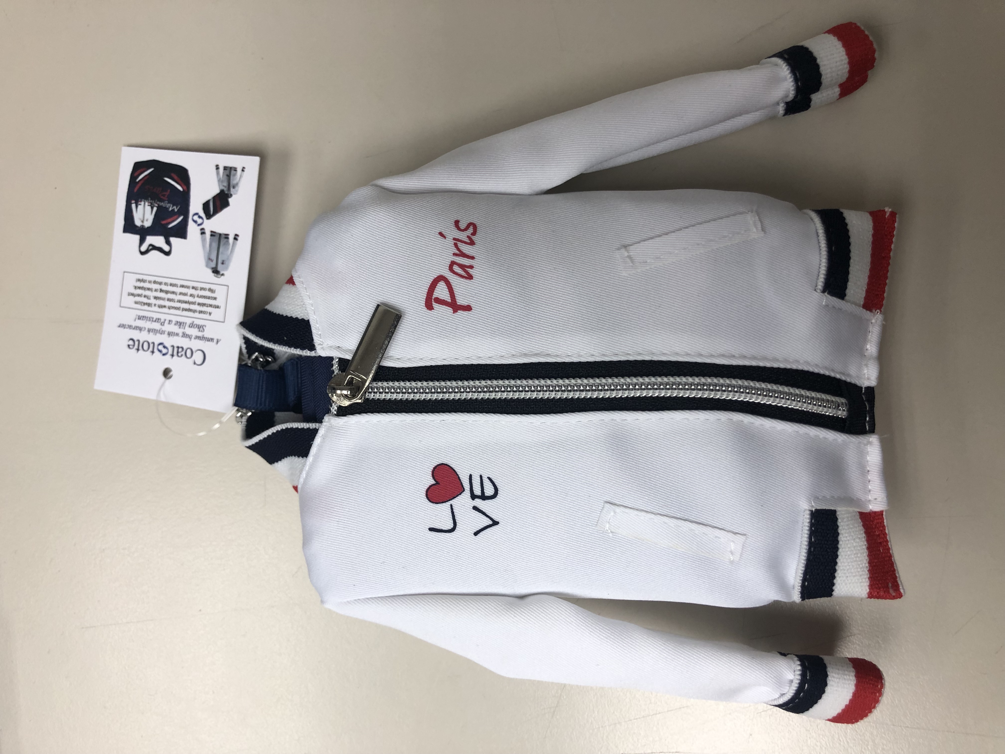 jacket like pouch with a retractable tote inside for casual shopping instyle