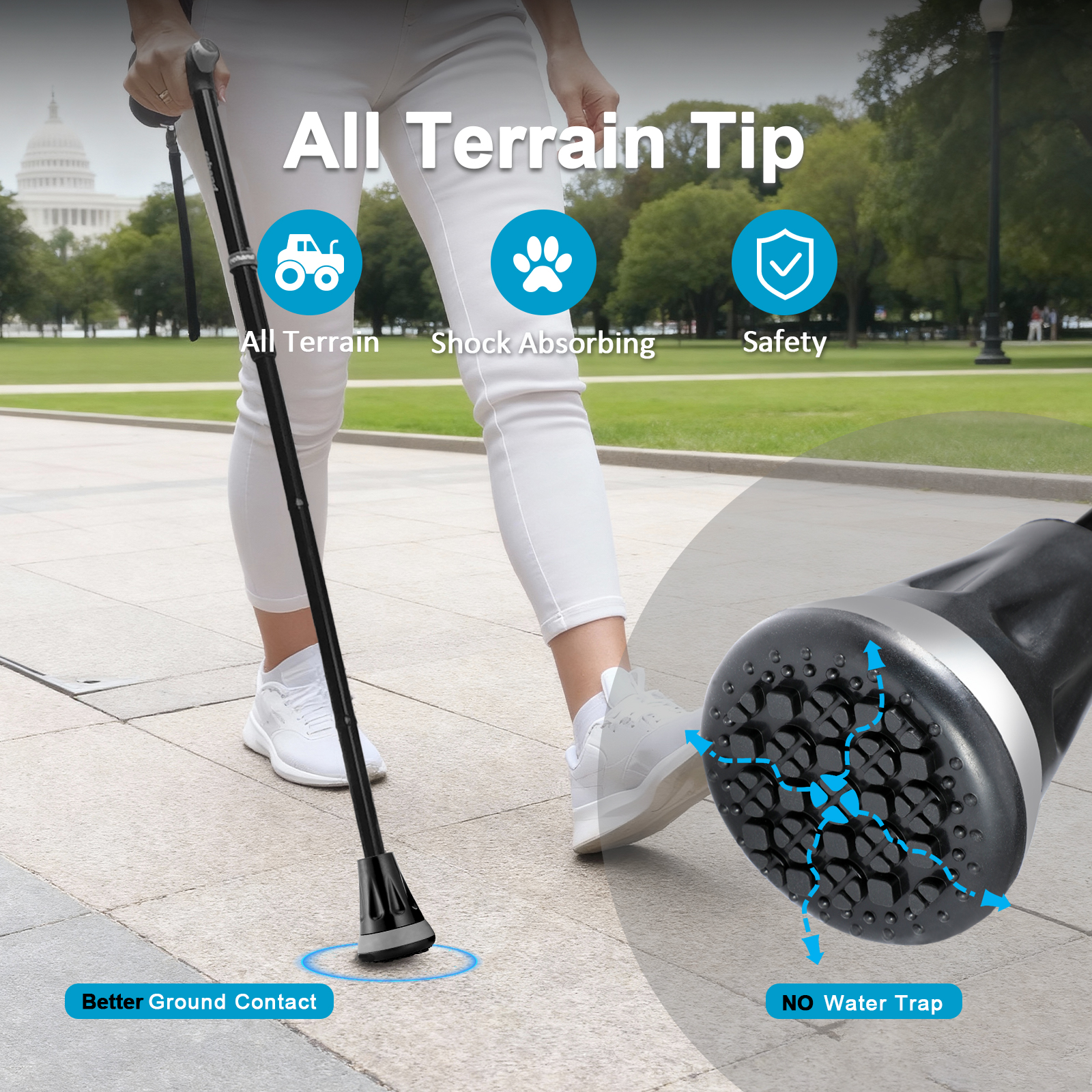 Ergonomic handle, shock absorbing ; suitable for all terrian