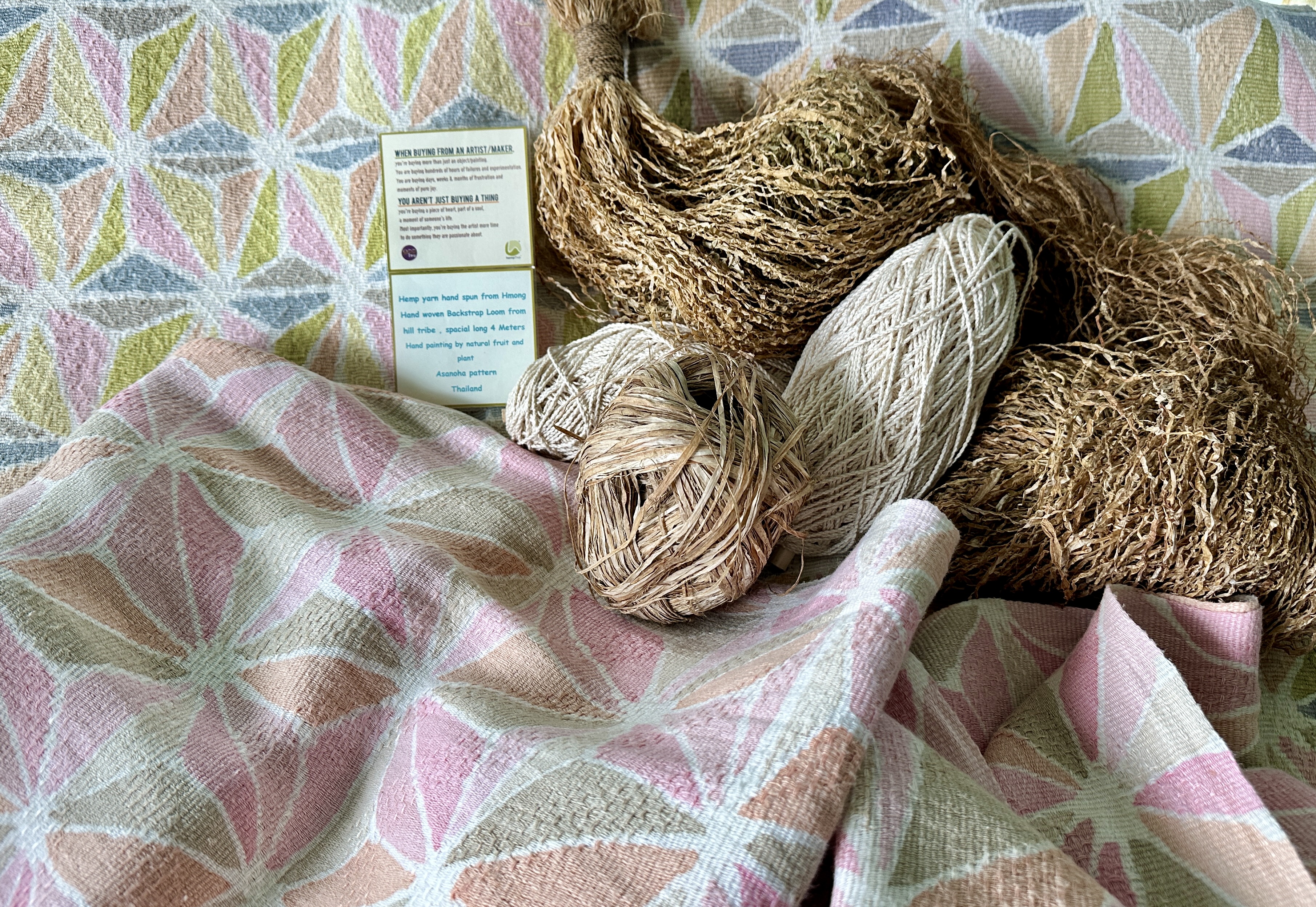 hand—there were no machines involved. The Hmong people held a deep belief that God had bestowed upon them hemp seeds, guiding them in the art of extracting fibers, spinning, boiling, kneading to soften