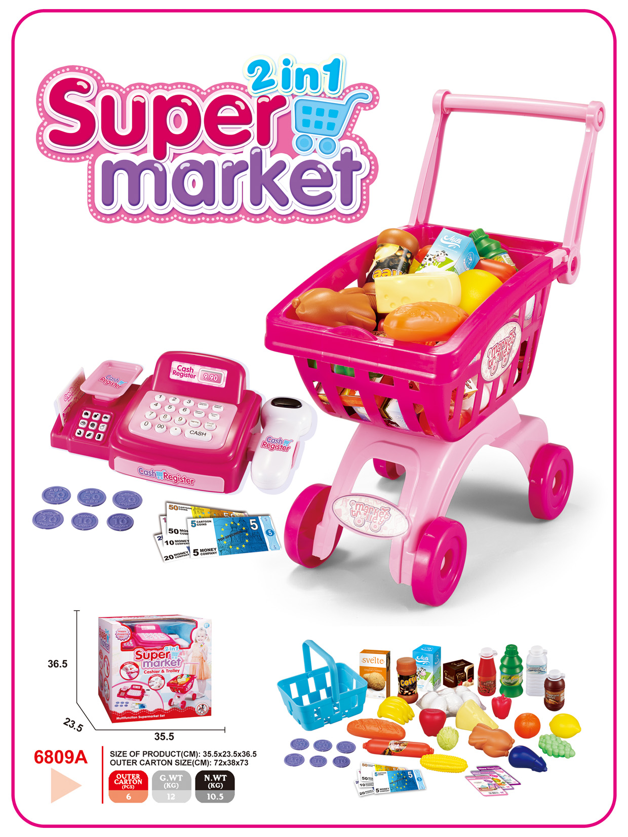 6809A, supper market include shopping trolley & cash register for a funny playing house .