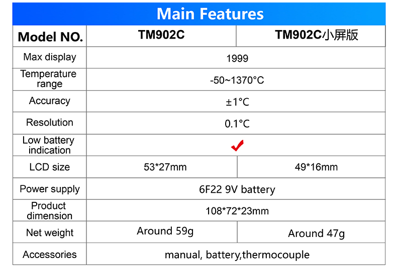 thermometer small LCD Factory direct sale K-type temperature meter TM902C