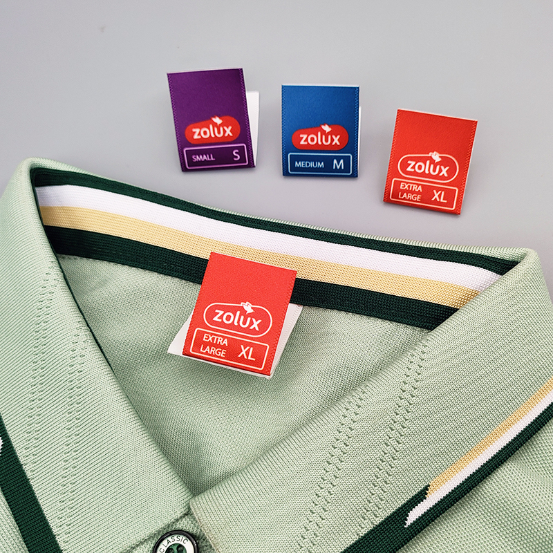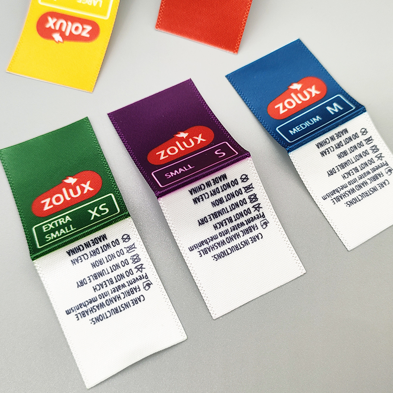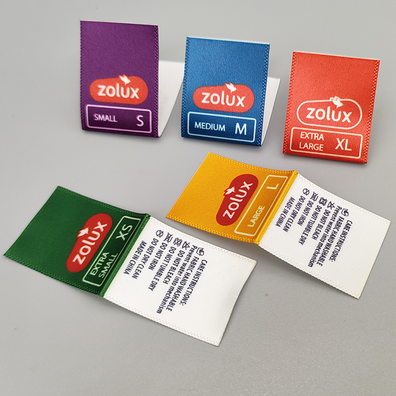 Size labels with fabric tags, made of satin material, suitable for clothing, suits, and coats.
