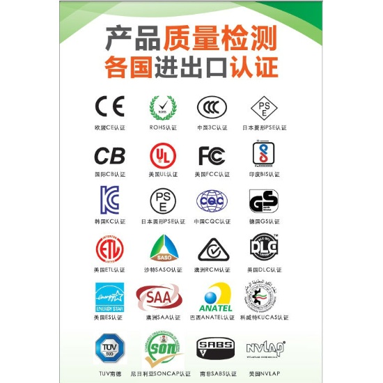 For battery products: UN38.3, MSDS, CE Direction, CB, KC, PSE, BIS, UL, ETL, IEC62133