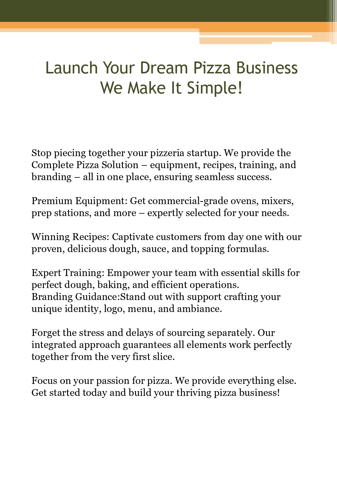 PIZZA TOTAL SOLUTION Equipment + Training + Brand
