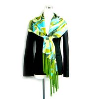 Hand Drawn Satin Silk Batik Shawl with Tassels