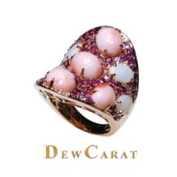 18K Rose Gold Coral Opal Ruby Pink Sapphire Ring