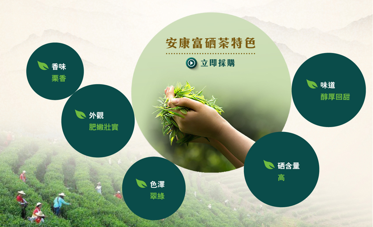 硒是人體必需的微量元素,具有護心腦、保肝腎、增強人體免疫力等功效,被譽為「生命的火種、抗癌之王、心臟守護神、天然解毒劑」。安康擁有獨一無二的生態富硒自然環境,生長出來的茶葉天然富硒,茶和硒元素兩種健康資源的有機結合,鑄就了安康茶葉「肥嫩壯實、色澤翠綠、栗香濃郁、醇厚回甜」的獨特品質和「生態富硒保健」的健康特質,是名副其實的生態茶、健康茶、安全茶、放心茶。雲南大學研究發現,安康富硒綠茶中茶氨酸的平均含量高,茶多酚含量低,有效避免了對胃的過度傷害。安康富硒紅茶伽馬氨基丁酸含量高,長期飲用富含伽馬氨基丁酸的安康富硒紅茶,可有助於解決睡眠障礙。